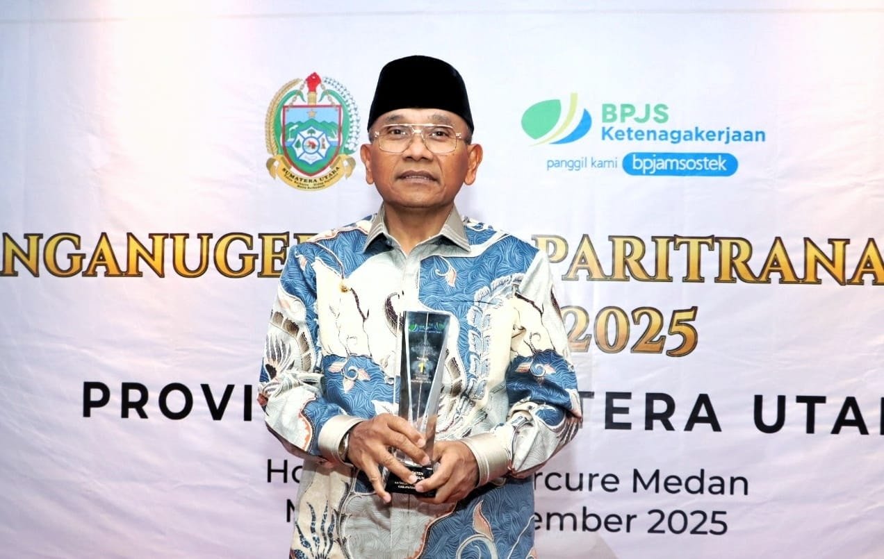 JadiKabar.com – Di balik gemerlap lampu Aula Hotel Grand Mercure Medan, Selasa (16/12/2025), sebuah pesan penting mengemuka: perlindungan bagi pekerja rentan bukan sekadar program, melainkan tanggung jawab moral negara. Pesan itulah yang mengiringi diterimanya Paritrana Award 2025 oleh Bupati Simalungun, Dr. H. Anton Achmad Saragih, sebagai bentuk pengakuan atas komitmen daerahnya dalam menjamin keselamatan sosial para pekerja.