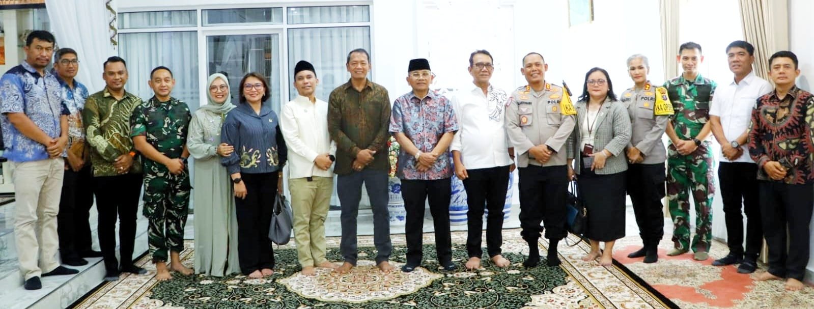 “Selamat Hari Raya Idul Fitri 1447 H, minal aidzin walfaidzin, mohon maaf lahir dan batin kepada ahli bait dan seluruh tamu yang hadir,” ujar Bupati.