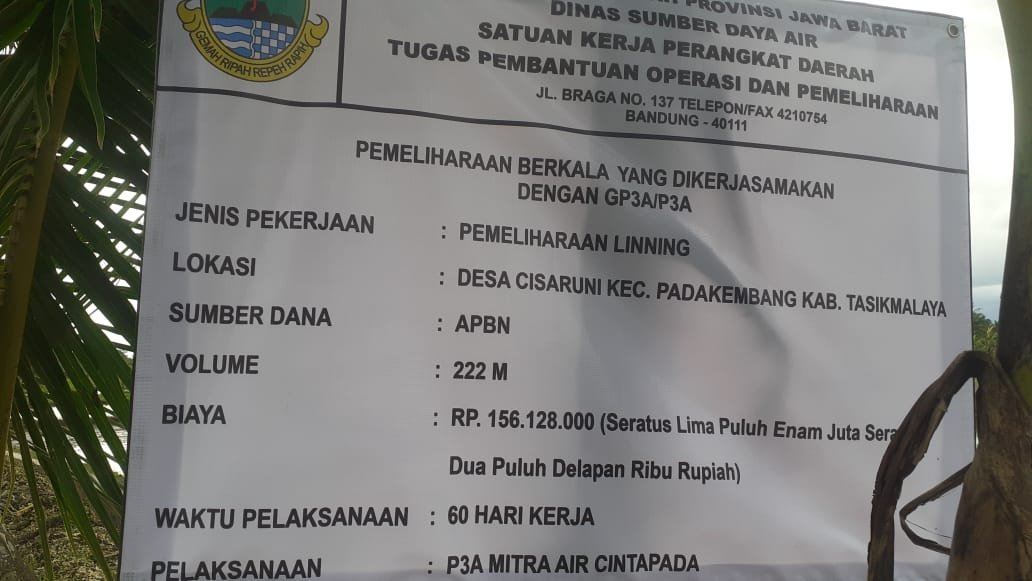 Tasikmalaya, jadikabar.com – Kelompok Perkumpulan Petani Pemakai Air (P3A) Mitra Air Cintapada yang berada di Desa Cisaruni, Kecamatan Padakembang, Kabupaten Tasikmalaya, menerima bantuan untuk kegiatan pemeliharaan lining saluran irigasi.