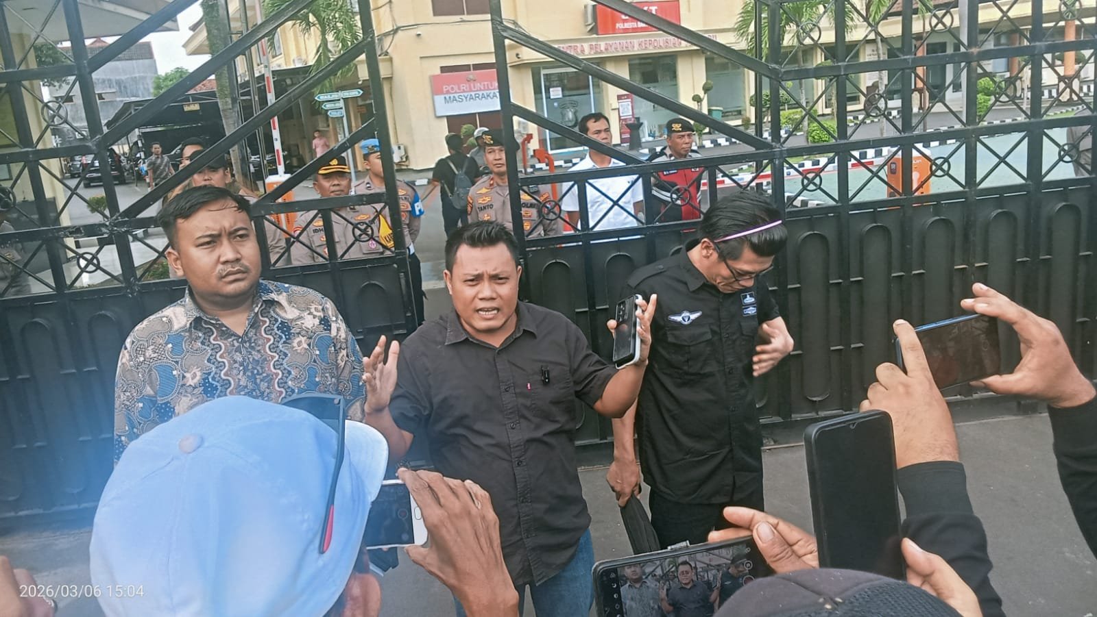 Banyuwangi, Jadikabar.com – Ketua Pergerakan wartawan Renkarnasi (PETAKA) Nang selamet SH, MH berkolaborasi dengan beberapa Lembaga dan puluhan wartawan Jum at 6/3/2026:geruduk Mapolresta Banyuwangi guna tindak lanjut tragedi tindakan pelarangan puluhan wartawan masuk dalam acara buka bersama Kapolresta di Hotel kokon adalah tindakan diskriminasi terhadap jurnalis, “jelas Nanang selamet SH, MH selaku ketua Pergerakan wartawan Renkarnasi (PETAKA) dihadapan puluhan wartawan didepan markas Polresta Banyuwangi.