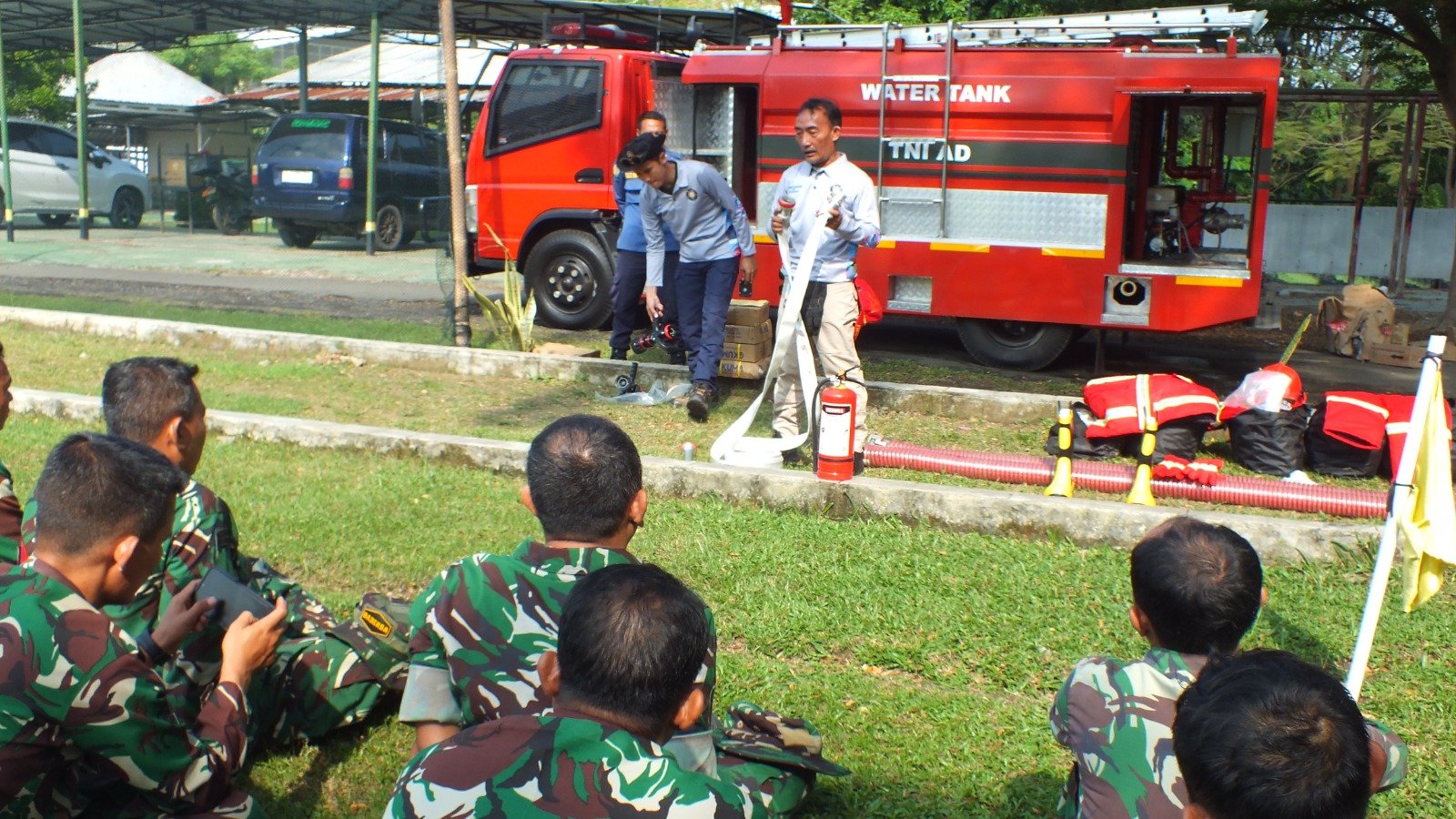 Dalam pelaksanaannya, para peserta diberikan pembekalan materi serta praktik langsung terkait teknik pemadaman api, penggunaan alat pemadam, hingga langkah-langkah penanganan situasi darurat di lapangan. Hal ini menjadi penting mengingat potensi kebakaran yang dapat terjadi sewaktu-waktu, baik di kawasan permukiman maupun lahan terbuka.