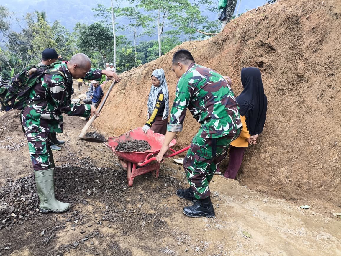 βJalan yang rusak akibat longsor sangat menyulitkan mobilitas warga, termasuk distribusi kebutuhan pokok dan hasil pertanian. Karena itu, kami bersama unsur terkait merasa perlu segera turun tangan dan mengambil langkah nyata,β ujar Kapten Inf Sudrajat.
