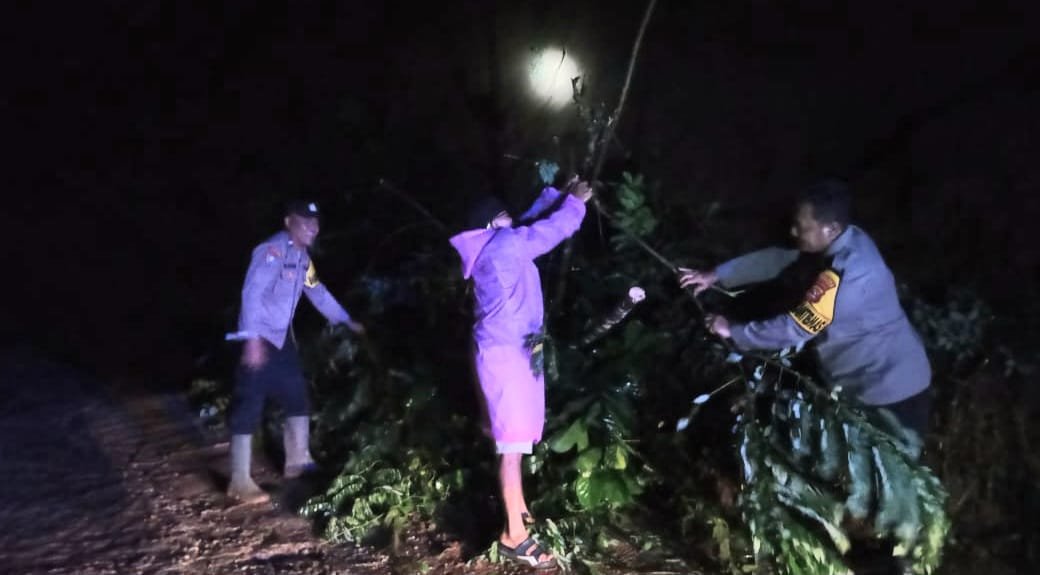 Personel Polsek Pulau Panggung telah berkoordinasi dengan kepala pekon setempat untuk melakukan pembersihan material longsor secara gotong royong membuka jalan.