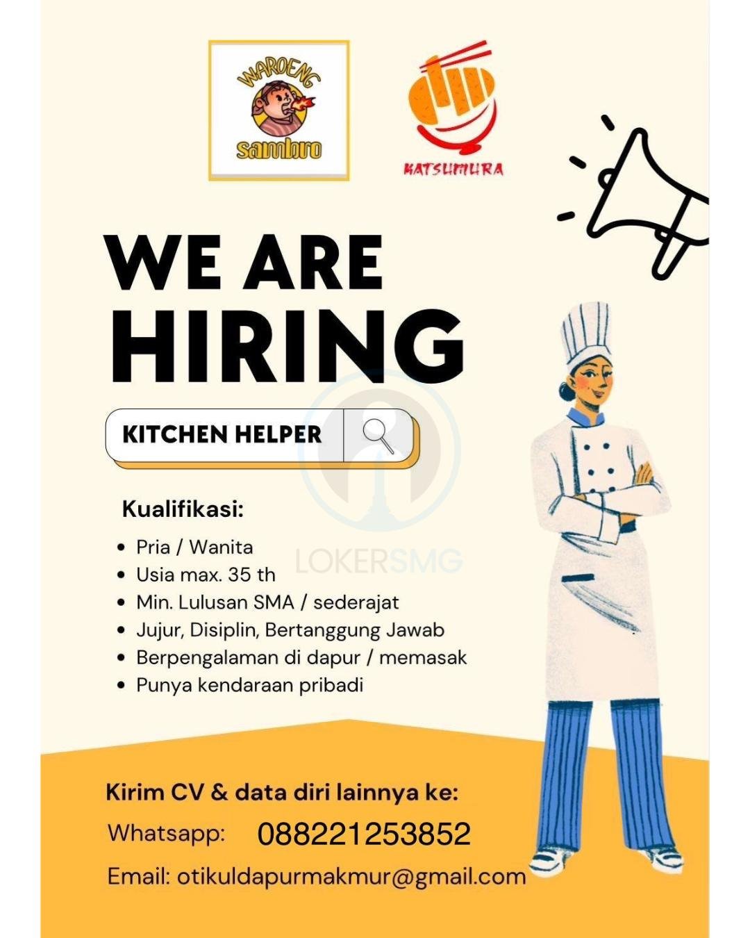 Bagi kamu yang sedang mencari pekerjaan di bidang kuliner, ada kabar baik. Wardeng Sambro Matsumura saat ini membuka lowongan kerja untuk posisi Kitchen Helper.