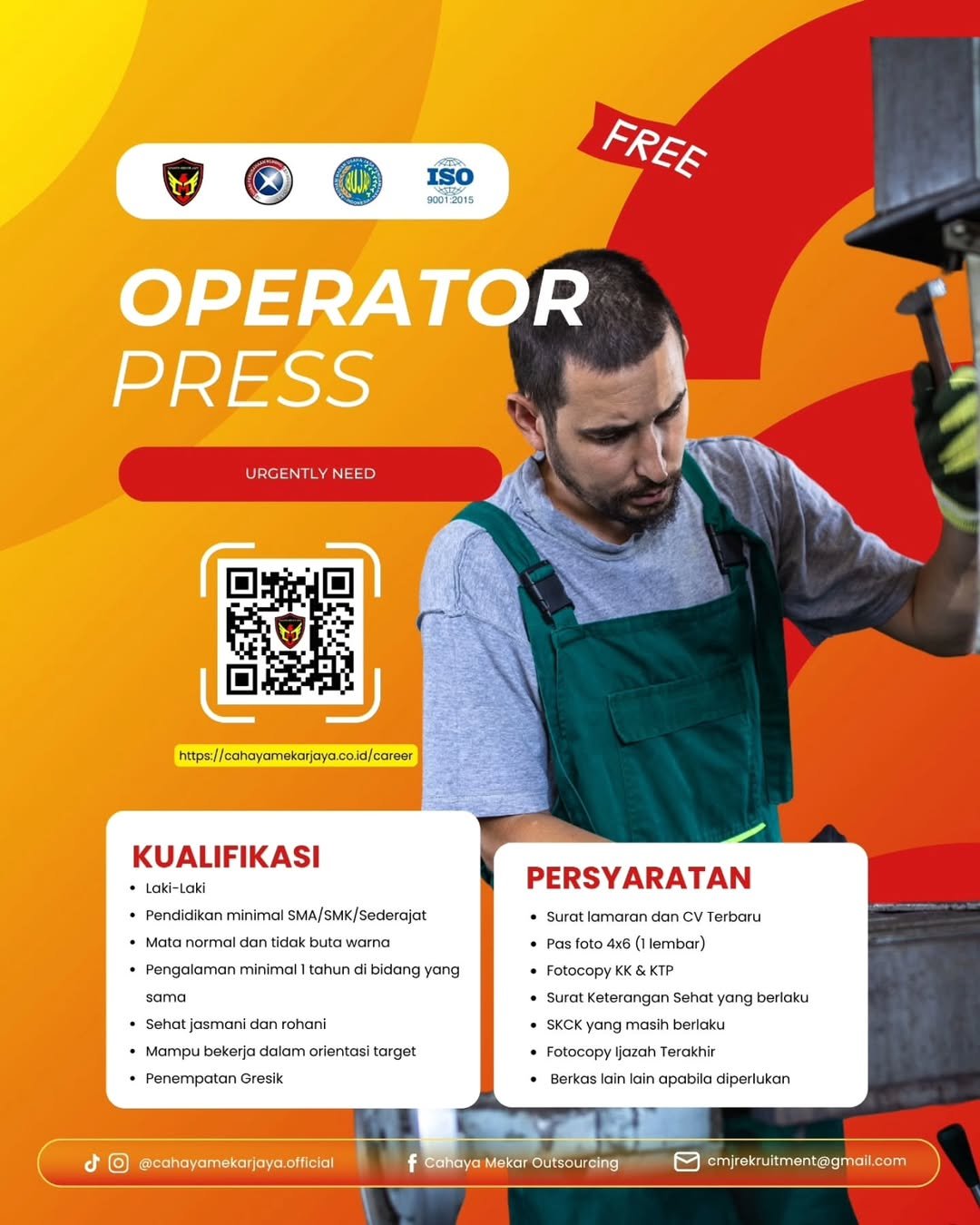 - Berpengalaman minimal 1 tahun sebagai operator press atau bidang terkait