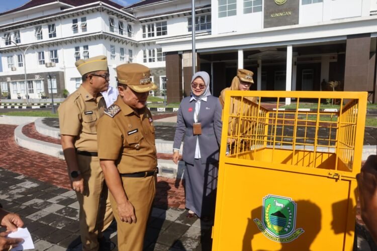 KUNINGAN, JADIKABAR.COM – Pemerintah Kabupaten Kuningan menerima bantuan 12 unit gerobak sampah dari program Corporate Social Responsibility (CSR) PT Pegadaian Cabang Kuningan. Penyerahan dilakukan secara simbolis kepada Bupati Kuningan Dr. H. Dian Rachmat Yanuar, M.Si., didampingi Wakil Bupati Kuningan Tuti Andriani, S.H., M.Kn. dan Sekretaris Daerah Kabupaten Kuningan Uu Kusmana, S.Sos., M.Si., dalam rangkaian apel pagi di halaman Kantor Pemerintah Daerah Kabupaten Kuningan, Senin (16/3/2026).