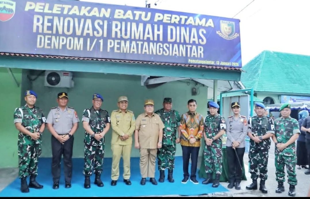 Setelah itu, dilakukan peletakan batu pertama pembangunan renovasi rumah dinas Denpom I/1 Pematang Siantar secara bersama-sama oleh Bupati Simalungun, Danpuspomad, dan Wali Kota Siantar.