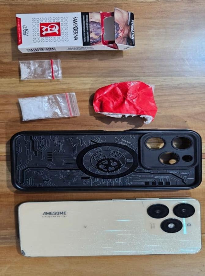 Kapolresta Cirebon, Kombes Pol Imara Utama, S.H, S.I.K, M.H, mengatakan, jajarannya turut mengamankan sejumlah barang bukti dari tersangka yang tercatat sebagai warga Kabupaten Cirebon tersebut. Diantaranya 2 paket narkoba jenis sabu, handphone, pakaian, lakban, dan lainnya.
